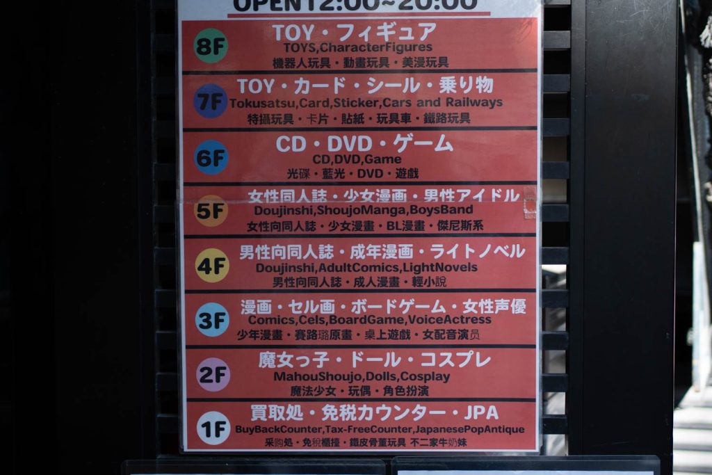 Just as we did with Radio Kaikan, I’m going to do a floor guide for the entire building so you can see if it’s worth visiting or not. Fair warning, we’ll be skipping a couple of floors for reasons that will become apparent!